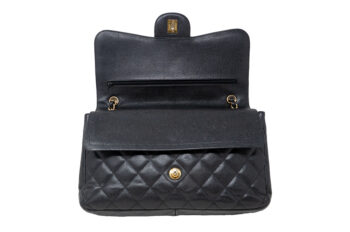 | وصف | كلاسيكية من شانيل بحالة ممتازة من عامي 2011–2012. بتصميم مبطّن، وحليات ذهبية، وقفل CC الأيقوني، تُعد هذه الحقيبة قطعة فاخرة لهواة الاقتناء |