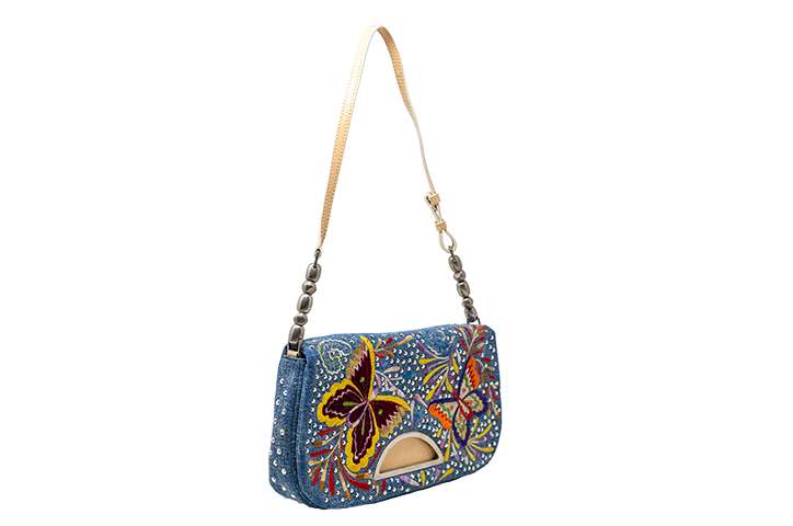 | d | تحفة من الـ Y2K، تجمع هذه الحقيبة بين الدنيم المطرز وحبيبات الراين اللامعة ونقشات الفراشات المرحة. يبرز تصميم نصف القمر ليمنحها لمسة فنية مميزة تمزج بين الجاذبية والأنوثة. قطعة لافتة تضيف شخصية وروحًا مبدعة لأي إطلالة، سواء كانت كاجوال أو عفوية بخطوة أنيقة. مفقود منها حجرتين فقط. |