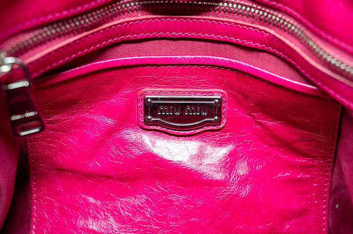| d | قطعة مميزة من ميو ميو بلون وردي لامع مع طيات ناعمة وأجزاء فضية تضفي لمسة أنثوية مرحة. تصميمها المنظم والأنيق يجعلها إضافة جريئة لأي إطلالة سواء في النهار أو المساء. تأتي مع حمالة كتف، بطاقة الأصالة ،وكيس الحفظ الأصلي |