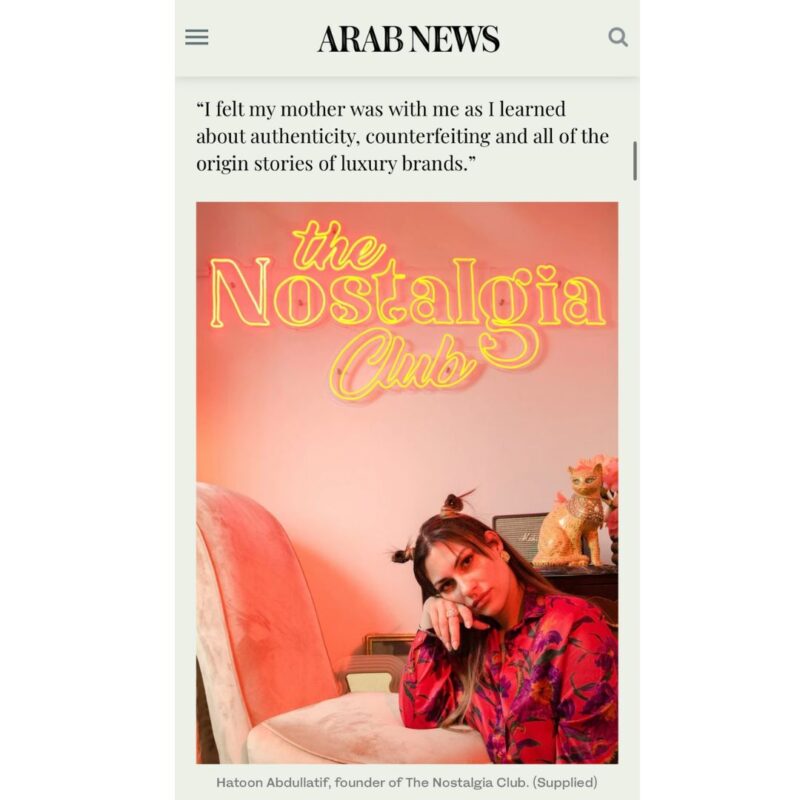 06 Jun Article Harper’s Bazaar Interview August 7, 2023 By TNC 0 comments In an interview with Arab News by Deema Al-Khudair, Hatoon Abdullatif, the founder of The Nostalgia Club, reveals her inspiration behin... Continue reading