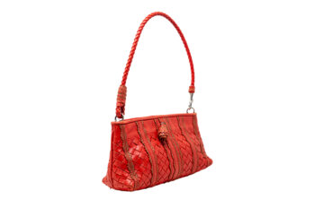 | d | A vintage Bottega gem, this red leather shoulder bag showcases the house’s iconic intrecciato weave with delicate lace-inspired detailing and a braided strap. Bold yet sophisticated, it’s a timeless expression of Italian craftsmanship—crafted for those who love elegance with character |