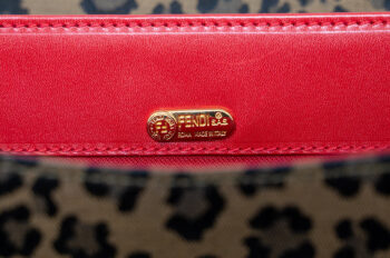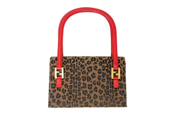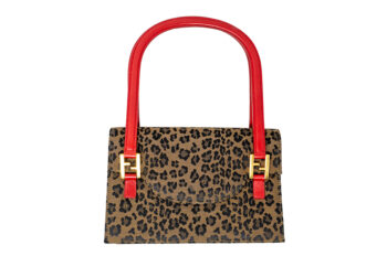 | d | A fierce Fendi favorite, this shoulder bag makes a statement with its leopard-print canvas body, bold red leather handles, and gleaming gold “F” accents. Structured yet playful, it’s the perfect blend of vintage edge and timeless glamour—made to turn heads with every wear |