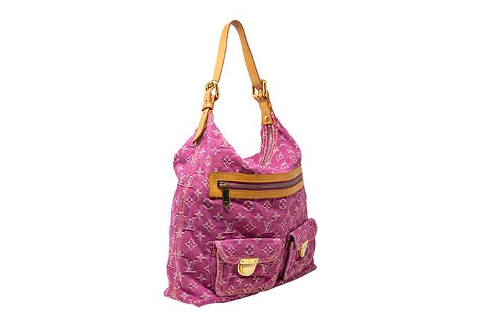 | d | A Y2K favorite, the LV Baggy GM in pink monogram denim brings effortless cool with a playful twist. Featuring natural leather trim, gold-tone hardware, and handy exterior pockets, it strikes the perfect balance between casual charm and everyday function. Bold, fun, and easy to style—this is the kind of bag that turns a simple outfit into a look. Comes with strap |