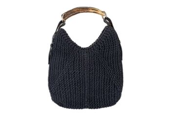 d A true collector’s piece, the Mombasa Navy Raffia Shoulder Bag fuses natural texture with sculptural design. Its handwoven raffia body and antler-inspired handle create a perfect balance of raw elegance and modern edge. Effortlessly bold yet timeless, it’s a statement accessory that captures artisanal luxury at its finest